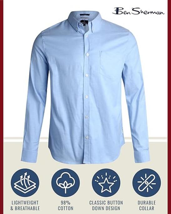 Ben Sherman Men's Button Down Shirt - Classic Fit Long Sleeve Button Down Shirt - Casual Dress Shirt for Men (S-XL)