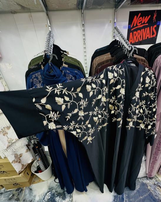 Midnight Onyx Embroidered 2-Piece Abaya Set Black (56) – Gold Vine Embroidery with Inner Slip