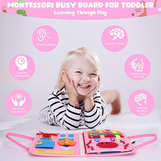 Busy Board for Toddlers, Montessori Sensory Toys Activity Board for Fine Motor Skills, Preschool Educational Learning for 1 2 3 4 5 Year Old Girls & Boys