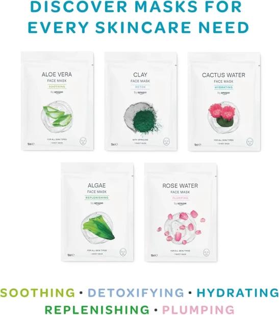 by Amazon Rose Water, Plumping Face Sheet Mask, 18ml, 5 Pack