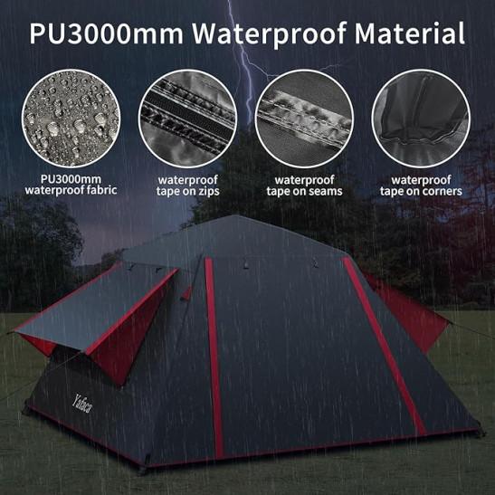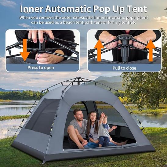 Camping Tent, 3 Man Pop Up Tent Extra Large Waterproof Automatic Dome Tent with 2 Rainproof Windows