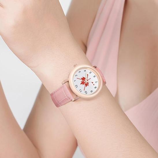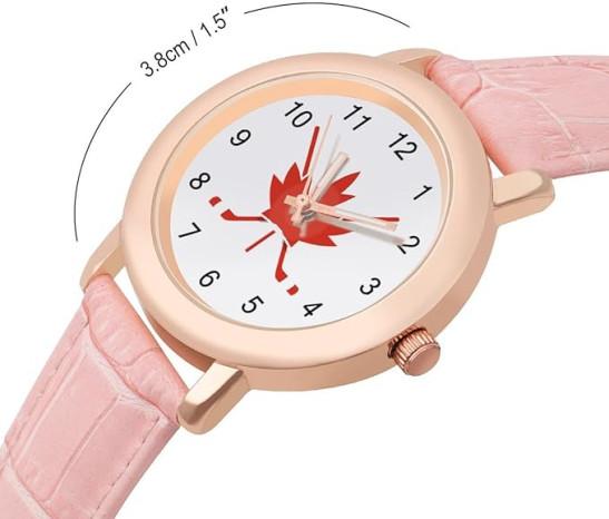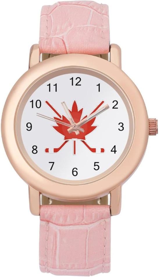 Canada Ice Hockey Maple Women's Watch PU Strap Wrist Watch Quartz Pink Valentine's Day Gift