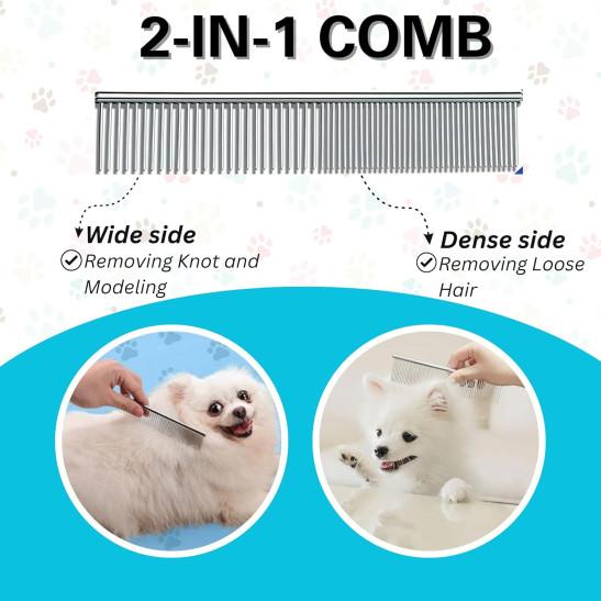 Candure Dematting Comb for Dog and Cat, Pet Grooming Rake and Brushes for Small, Medium & Large Dogs 17+9 Double Sided Deshedding Tool Removes Knots and Tangled Hair (Blue)