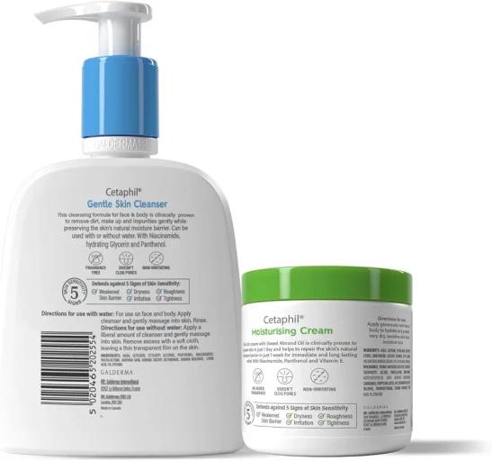 Cetaphil Hydrating Gentle Skin Cleanser 236ml + Body Moisturising Cream 450g Skincare Set, For Dry & Sensitive Skin