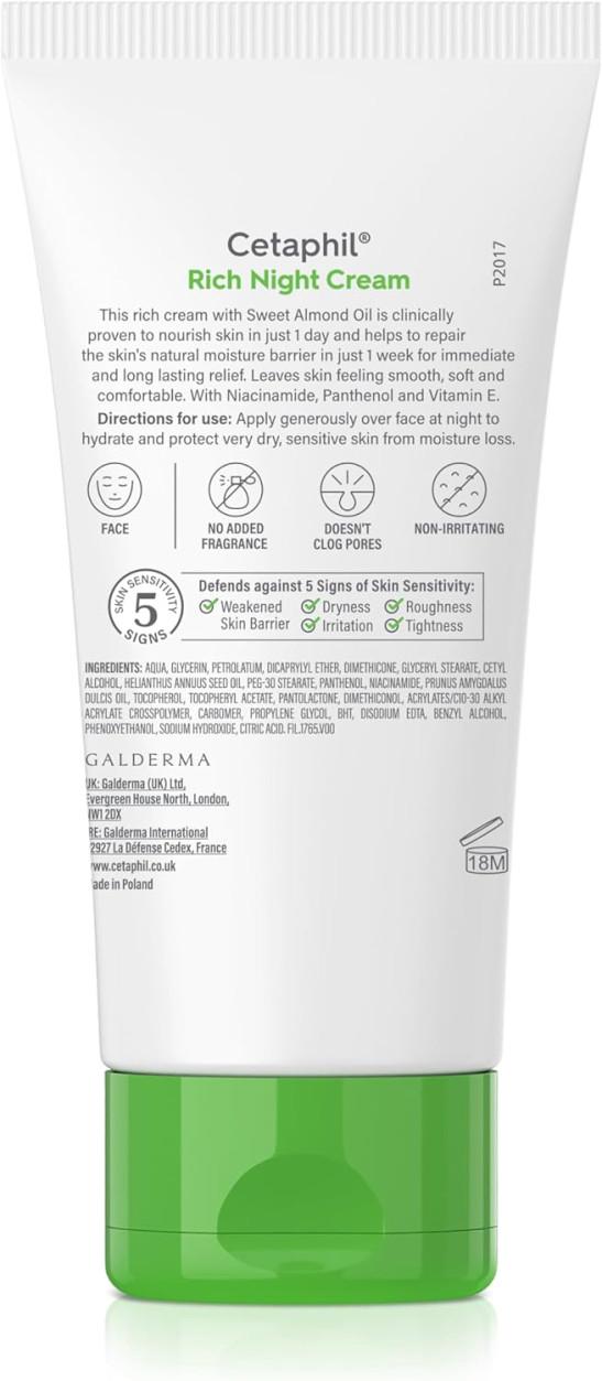 Cetaphil Rich Night Cream, 50g, For Dry To Very Dry, Sensitive Skin, With Niacinamide