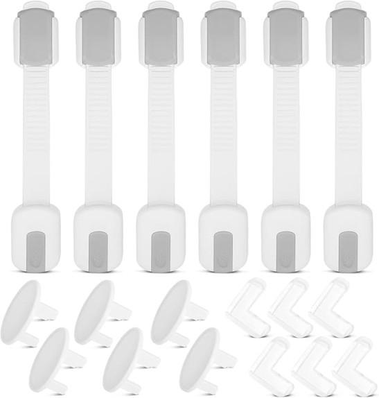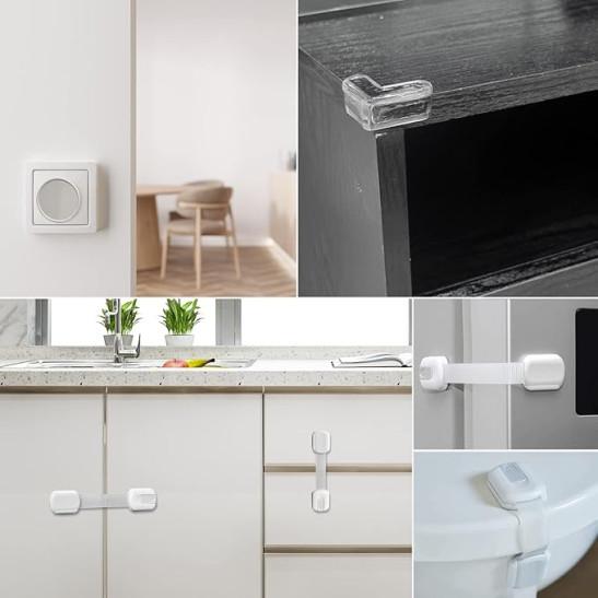 Child Safety Locks, Baby Proofing, Pack of 20, 6X Kitchen Cupboards, Fridge Door Safety Locks, 8X Corner Guards, 6X Sockets Covers No Tools Or Drills Required. Very Easy to Install.