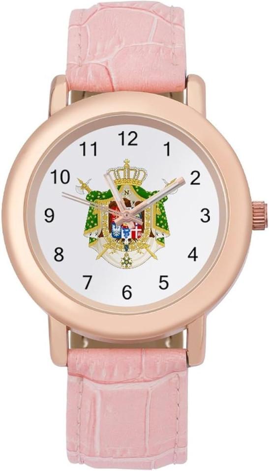 Coat of Arms of The Kingdom of Italy Fashion Watch For Women Easy Reader Novelty Round Watches Slim Quartz Casual Dress Wrist Watch Pink