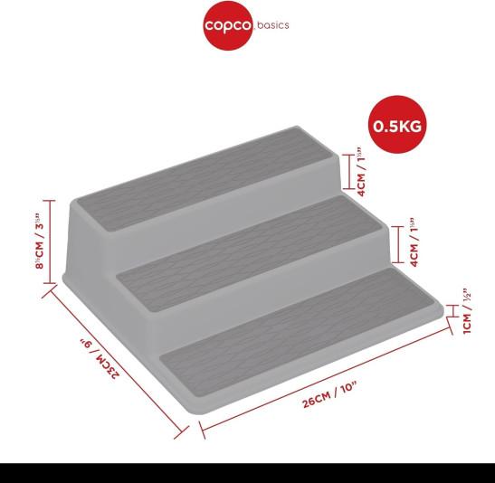 Copco Basics 3-Tier Spice Rack for Inside Cupboard, Non-Slip Kitchen Shelf Organizer, 26 x 23 x 8.5cm, White/Grey