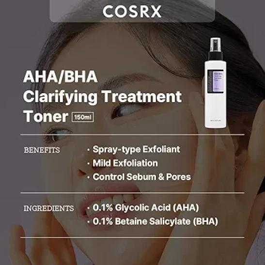 COSRX AHA/BHA Treatment Toner Facial Exfoliating Spray with Glycolic Acid, Blemish Control and Oil Balancing Korean Toner, Gentle Exfoliation and Minimizing Whiteheads and Pores Korean Skincare 150ml