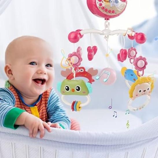 Cot Mobile for Babies, Baby Mobile for Crib, Hanging Projection Mobile with Music Box, Timing Function, Musical Mobile for Baby, Gifts for 0-12 Months Newborn