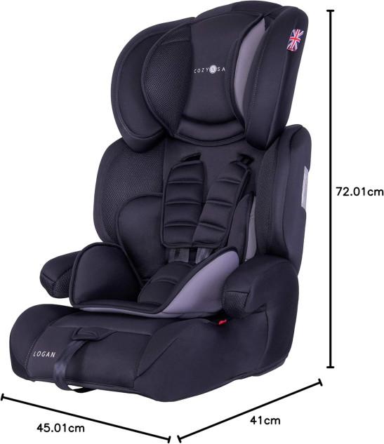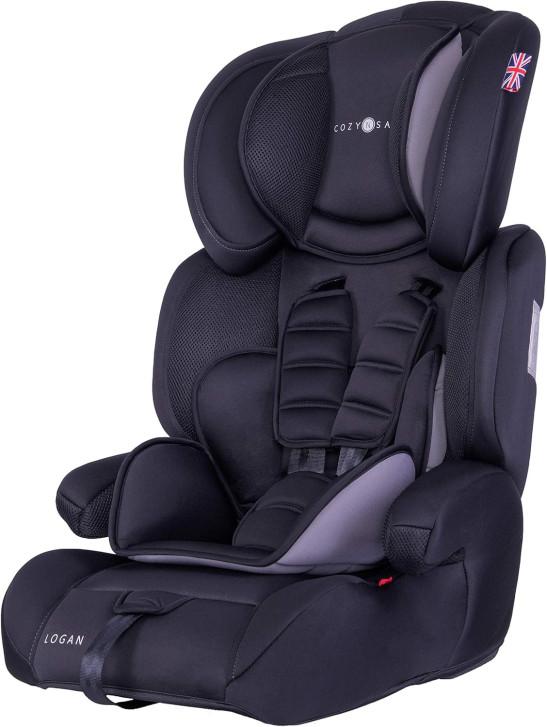 Cozy N Safe Logan Group 1/2/3 Car Seat 9-36kg, 9 Months to 12 Years, 5 Point Harness, Forward Facing, Side Impact Protection, Adjustable Headrest, Lightweight, Child, Toddler Car Seat - Black/Grey