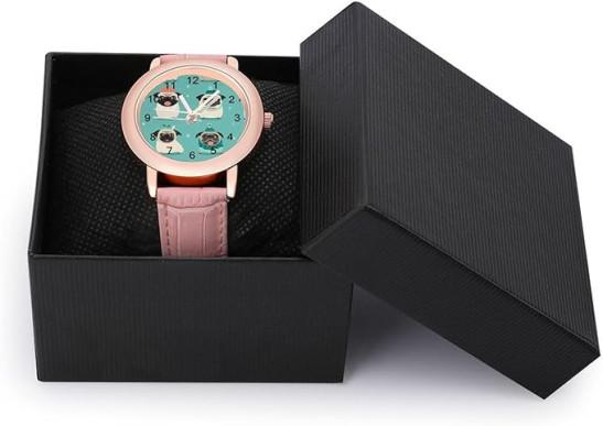 Crazy Cute Pug Dogs Fashion Watch For Women Easy Reader Novelty Round Watches Slim Quartz Casual Dress Wrist Watch Pink