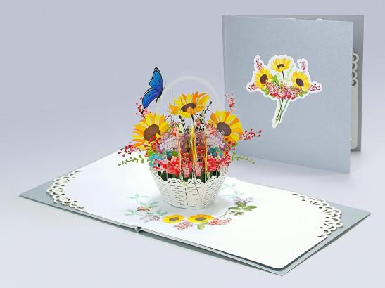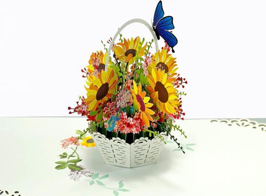 CUTPOPUP Sunflowers Basket - Birthday Cards for Women, Mothers Day Cards Pop Up, Flowers 3D Greeting Card, Anniversary Cards, Valentines Card UK
