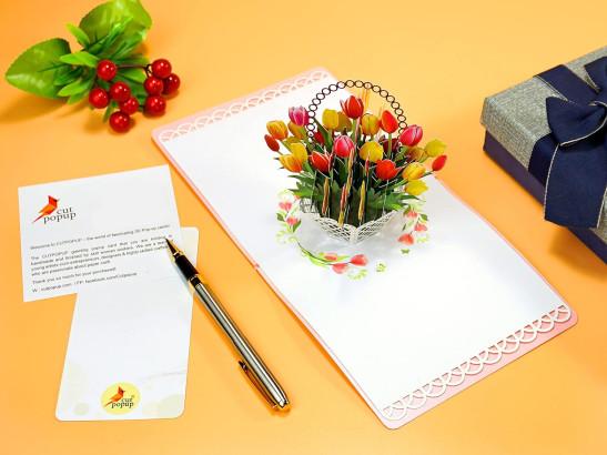 CUTPOPUP Tulip Flower 3D Cards - Mothers Day Card, Birthday Cards for Women, Anniversary Cards, Valentines Card, 3D Greeting Pop Up Card UK