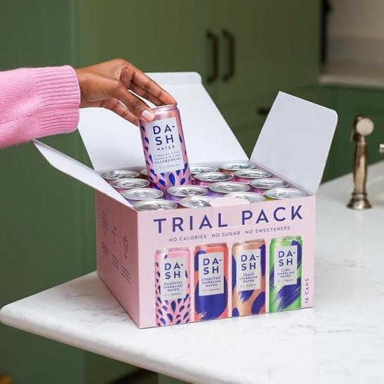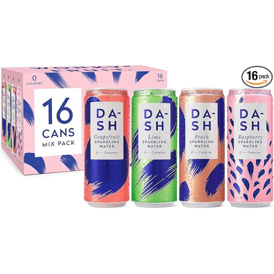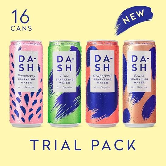 DASH Water Mixed Pack x 16 – Flavoured Sparkling Spring Water – Raspberry, Lime, Grapefruit, Peach – Infused with Wonky Fruit (16 x 330ml cans)