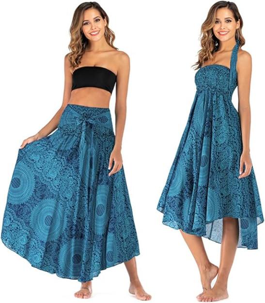 Daysskk Women's Maxi Skirt 2 in 1 Halter Dress Womens Boho Skirts Summer Beach Skirt 37"