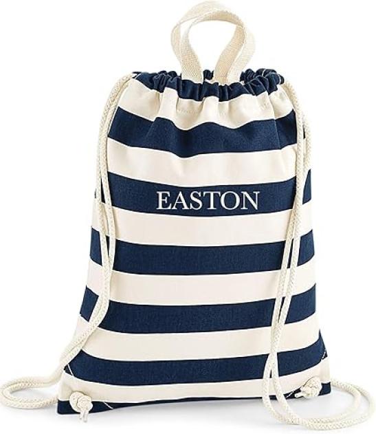 Daytripper Personalised Drawstring Bag, Gym Bag For Kids or Adults, Custom Name, Nautical Beach Bag, Swimming Bag, PE Kit For Girls and Boys, Womens, Mens