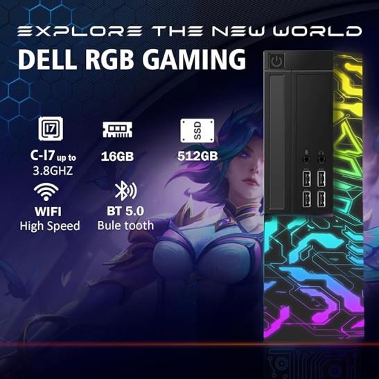 Dell Gaming PC Bundle, 24" Monitor, Intel Core I7 3.4G up to 3.8GHz, 16GB RAM, 512GB SSD, 300M WiFi, Refurbished Gaming Desktop Computer, Windows 10 (Renewed)