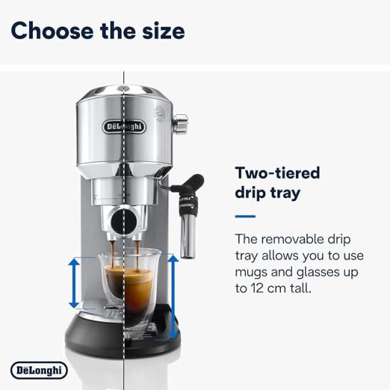De'Longhi Dedica Style, Traditional Pump Espresso Machine, Coffee and Cappuccino Maker, EC685M, Silver