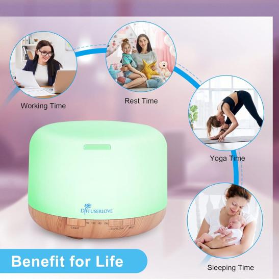 Diffuserlove Essential Oil Diffuser 500ML Remote Control Ultrasonic Aromatherapy Diffuser Cool Mist Humidifiers with Mute Design, Timer and Waterless Auto Shut-off, 7 Color LED for Office Living Room