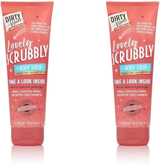 Dirty Works Lovely Scrubbly Shea Butter Body Scrub, Soft Exfoliating & Hydrating Skin Scrub, 250ml (Pack of 2)