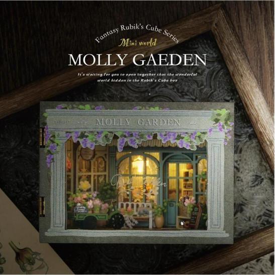 DIY Miniature Magic Cube Series(Molly Garden), Mini Wooden Dollhouse Kit with Furniture's, Creative Book Nook Kits Building Model with LED Light for Teenager & Adults