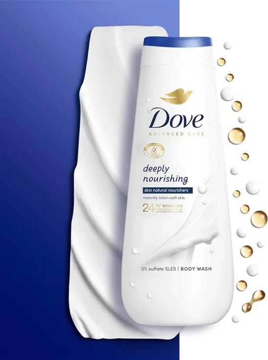 Dove Advanced Care Deeply Nourishing Body Wash Body Cleanser shower gel with skin-natural nutrients for instantly lotion-soft skin 6x 400 ml