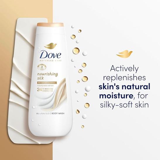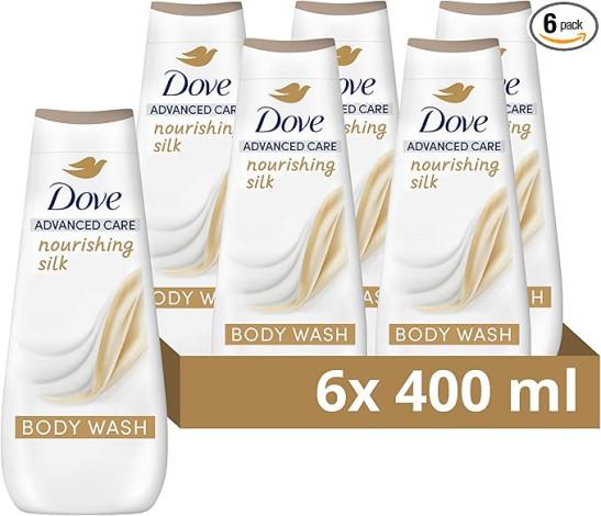 Dove Advanced Care Nourishing Silk Body Wash Body Cleanser shower gel with skin-natural nutrients for instantly silky-soft skin 6x 400 ml