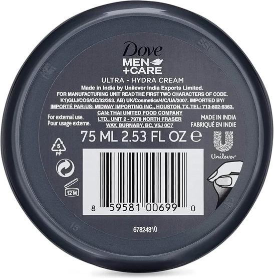 DOVE MEN + CARE Ultra Hydra Cream - Moisturising Effect for Face, Hands, Body - Suitable for All Skin Types, 75 ml