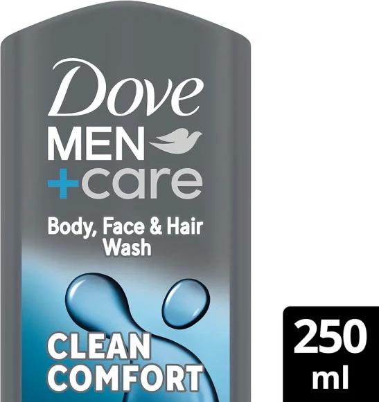 Dove Men+Care Hydrating Clean Comfort 3-in-1 Hair, Body and Face Wash Body Cleanser shower gel with 24 hour nourishing MicroMoisture technology for relaxed and re-energised skin 250 ml