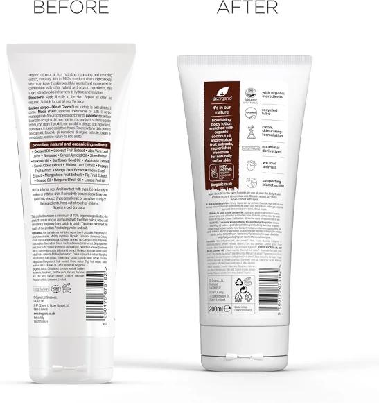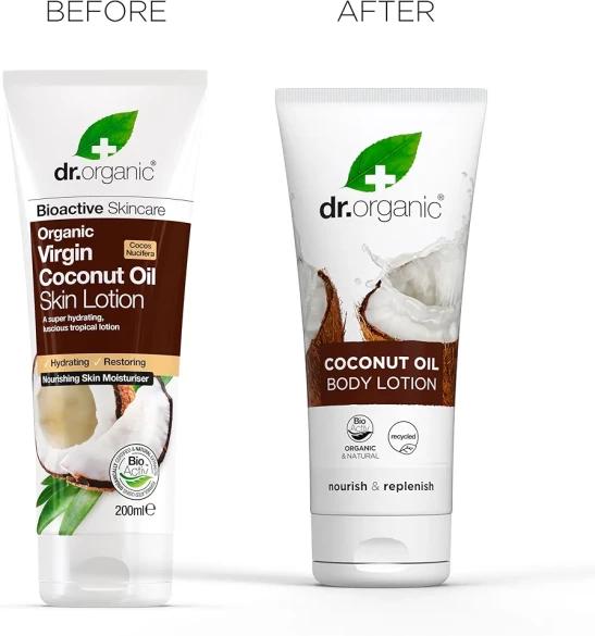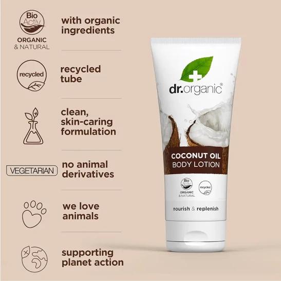 Dr Organic Coconut Oil Lotion, Moisturising, Dry Skin, Mens, Womens, Natural, Vegetarian, Cruelty-Free, Paraben & SLS-Free, Organic, 200ml, Packaging may vary