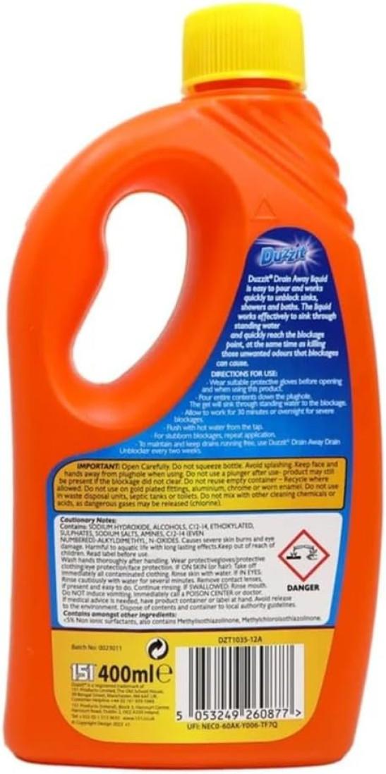 Duzzit Drain Away Sink, Shower & Bath Unblocker Cleaner - 2 Pack (400ml Each) | Powerful Blockage Remover for Drains, Pipes & Plugholes