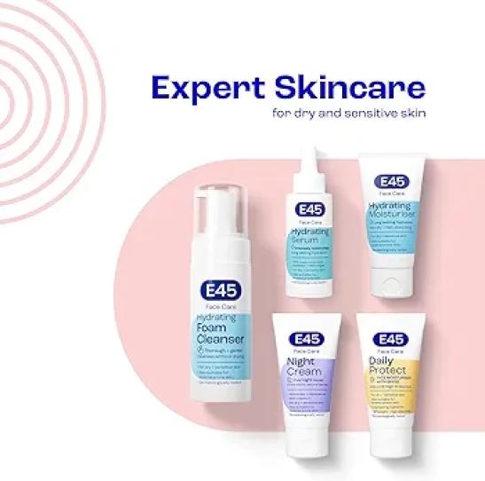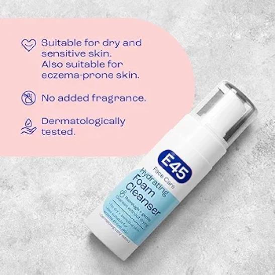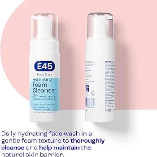 E45 Face Wash Foaming Cleanser – Daily Face Cleanser for Dry and Sensitive Skin – Gentle Facial Cleanser – Removes Excess Oil and Makeup for Clean, Soft Skin - Skin Care Facewash for Women & Mens Skin