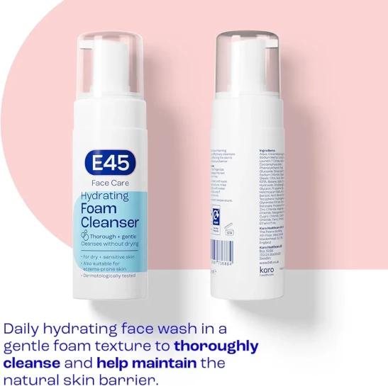 E45 Face Wash Foaming Cleanser – Daily Face Cleanser for Dry and Sensitive Skin – Gentle Facial Cleanser – Removes Excess Oil and Makeup for Clean, Soft Skin