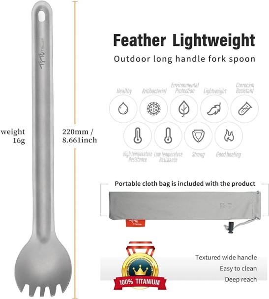 Eco-Friendly Titanium Long Handle Spork and Spoon