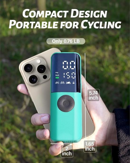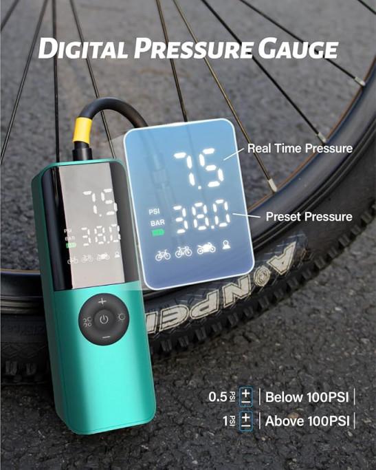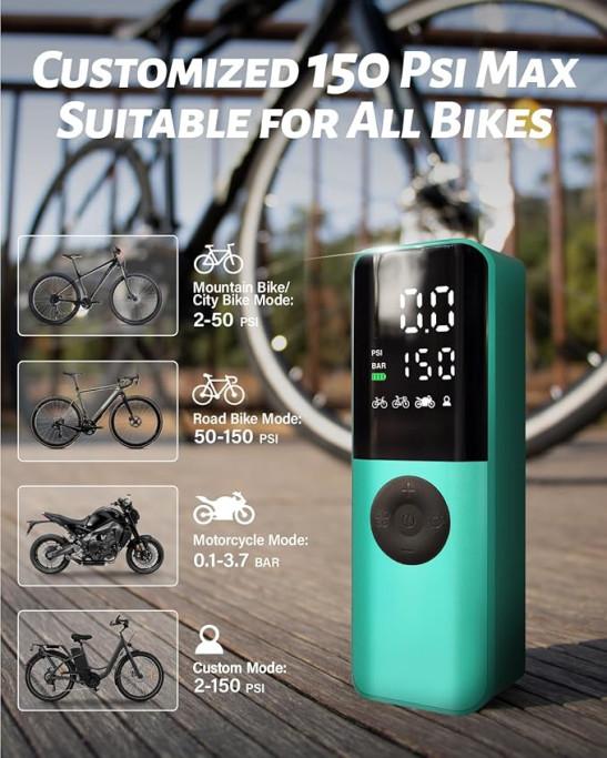Electric Bike Pump, 150Psi Portable Bicycle Tire Pump with Digital Pressure Gauge for Road Bike