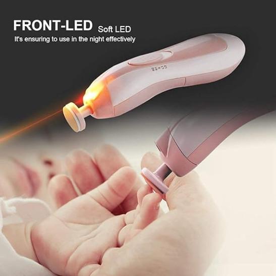 Electric Safe Baby Nail Clippers, Trim Polish Grooming kit for Newborn Toddler or Adults Toes Fingernails, 6 Grinding Heads and LED Light, Pink