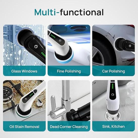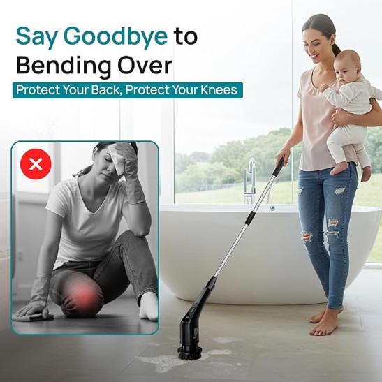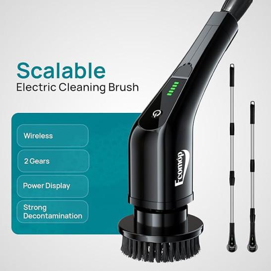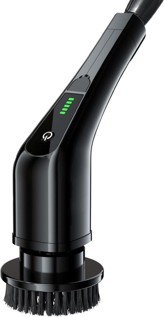Electric Spin Scrubber–Cordless Power Scrubber for Home Cleaning, 400RPM, 8 Replaceable Brush Heads, 90-Min Work Time, 3 Adjustable Sizes, Dual-Speed for Bathroom, Shower, Bathtub, Glass & Car (Black)