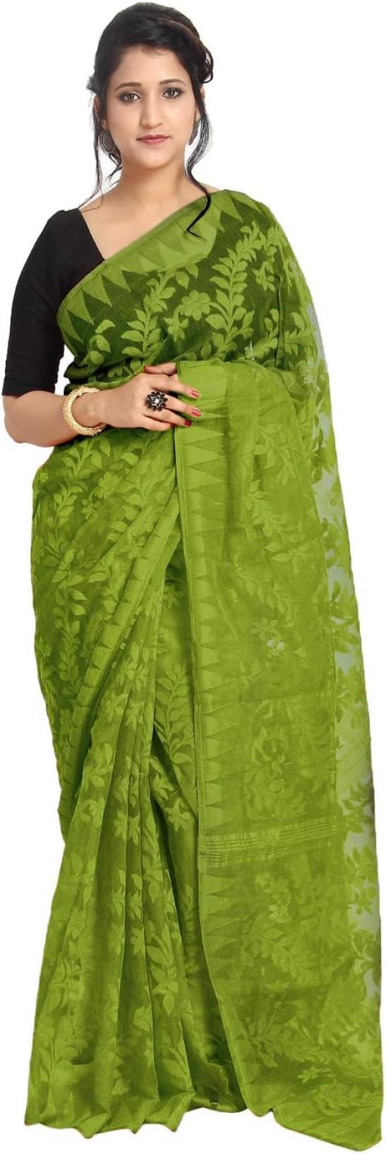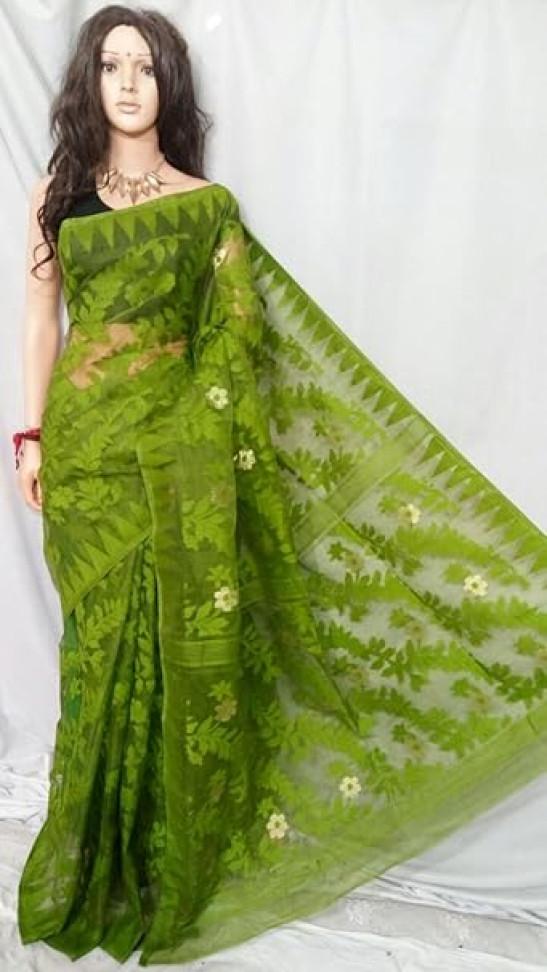 Ethnic Green Handloom Dhakai Jamdani Sari Weaving Work Bengal Women Sari Indian Festive Saree 105 SB, Multi Color, Bust Size : 28 to 42 inches