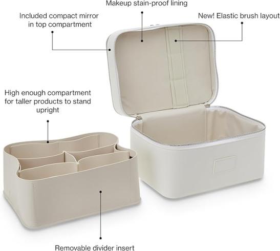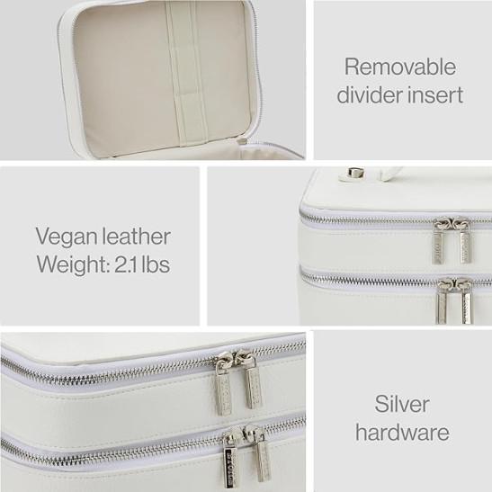 ETOILE - Duo Vanity Case - Large Functional Travel Makeup Bag Organizer with Removable Divider & Mirror, Off White, Dual-zip Vanity Case With Two-tier Design and Carry Handle