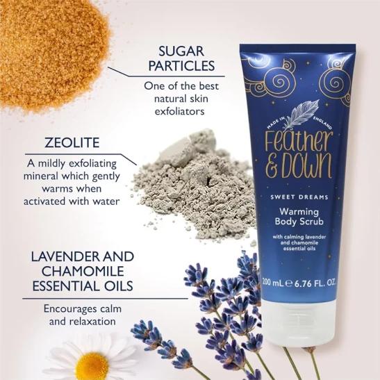 Feather & Down Warming Body Scrub (200ml) - With Calming Lavender & Chamomile Essential Oils.