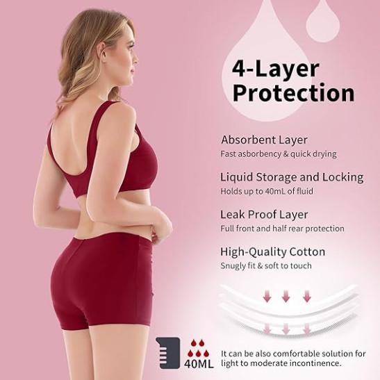 feitycom Period Swimwear-Menstrual Swimwear Bikini Bottoms-Boy Short Leakproof Swim Bottoms for Girls and Women