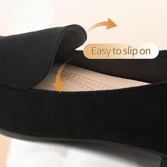 FINIWOR Women's Pumps Block Low Heel Pumps Shoes Faux Suede Ballet Flats Slip On Womens Closed Toe Shoes Dress Flats for Womens