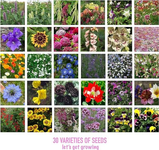 Flower Seed Variety Pack - 30 Different Varieties of Flower Seeds to Grow Your Own. Butterfly and Bee Attracting, Grow Indoor and Outdoor. Gardening Gifts for Women and Men