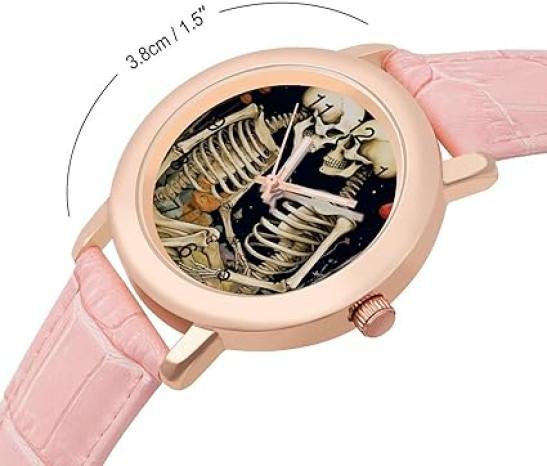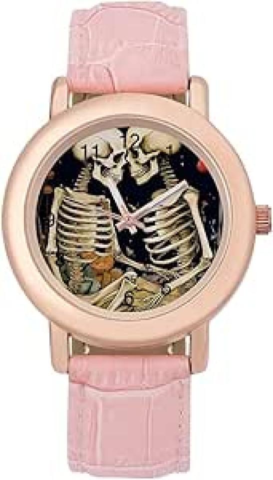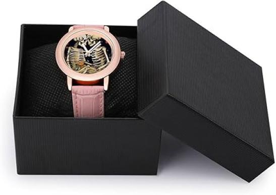 Flower with Skeleton Couple Fashion Watch For Women Easy Reader Novelty Round Watches Slim Quartz Casual Dress Wrist Watch Pink