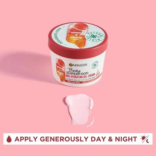 Garnier Body Superfood, Hydrating Gel-Cream for Body, With Watermelon & Hyaluronic Acid, Body Gel-Cream for Normal Skin, Vegan Formula, 380ml