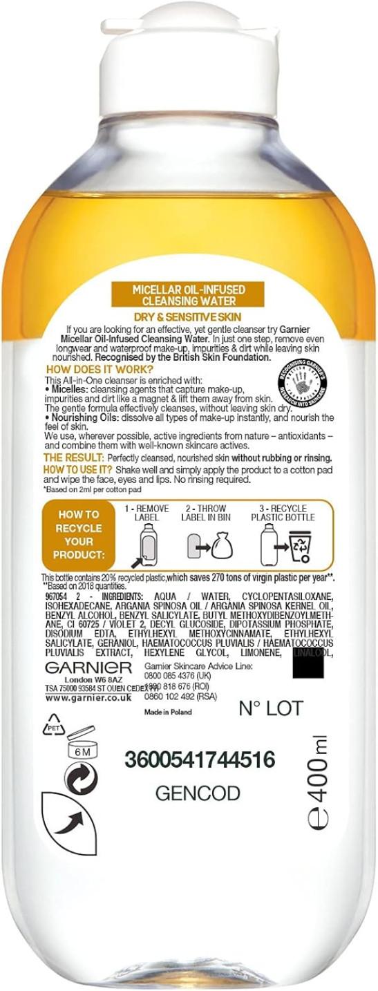 Garnier Micellar Cleansing Water, Oil-Infused, 400ml