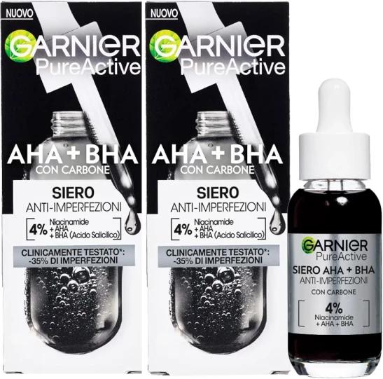 Garnier PureActive Anti-Imperfection Face Serum with Charcoal Niacinamide AHA BHA Treatment Pimples Blackheads Redness Marks Light Mattifying Uniforming Formula Without Residue - 2 Bottles 30ml