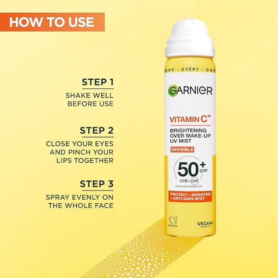 Garnier Vitamin C Brightening Over Make-Up UV Mist, Vegan - 75ML