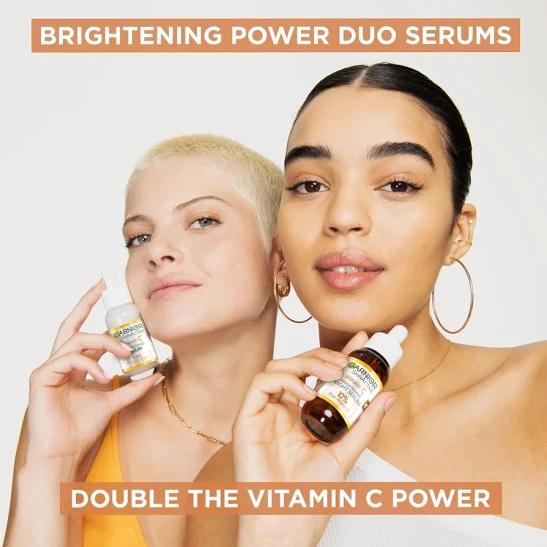 Garnier Vitamin C Serum Set, Day & Night Serums for Face and Neck, Anti-Dark Spots, Smooths & Brightens, Vegan Formula, For Dull, Uneven Skin, Bundle 2 x 30ml